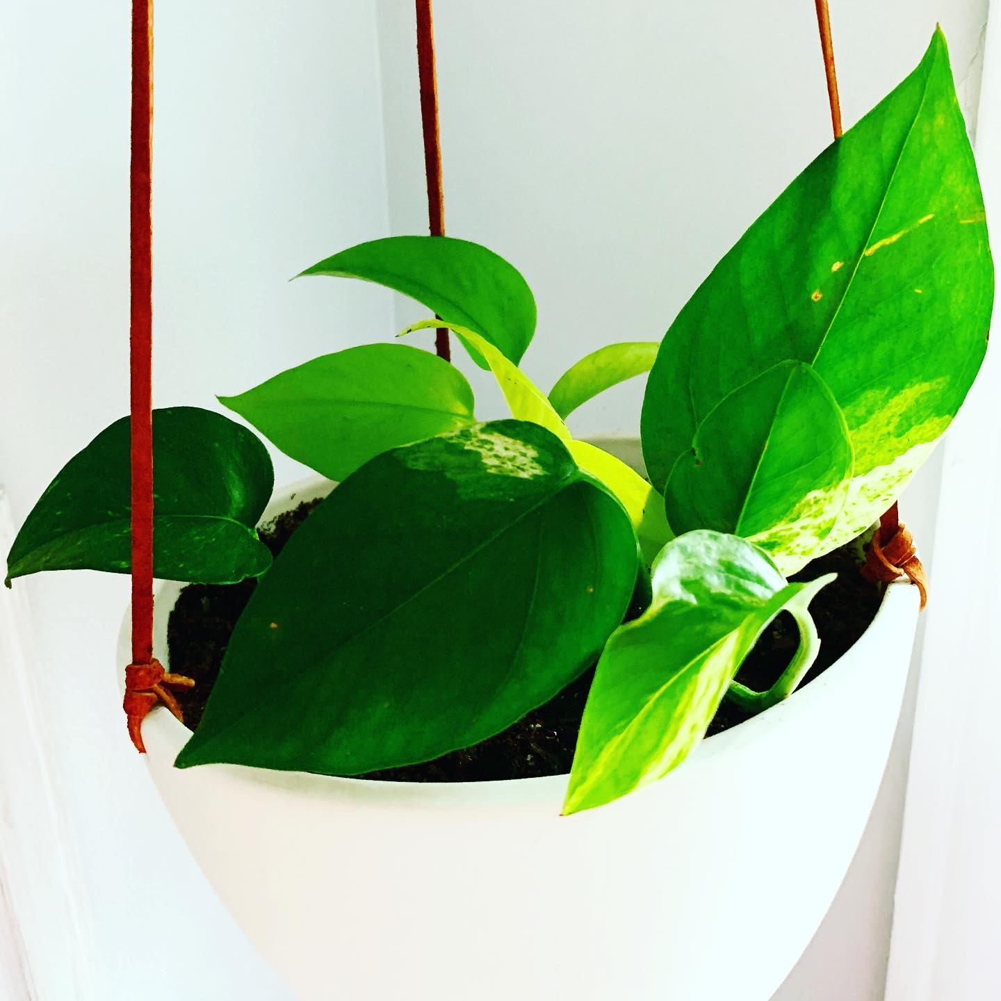 After the roots were long enough, I transplanted them into my cool hanging pot that my friend of mine from college made (#ceramicsmajors). She started an adorable store in Marquette, Michigan called Revisions. If you ever find yourself in the Upper Peninsula in Marquette, you have to check it out. They sell plants, vessels for plants, and different unique gifts.