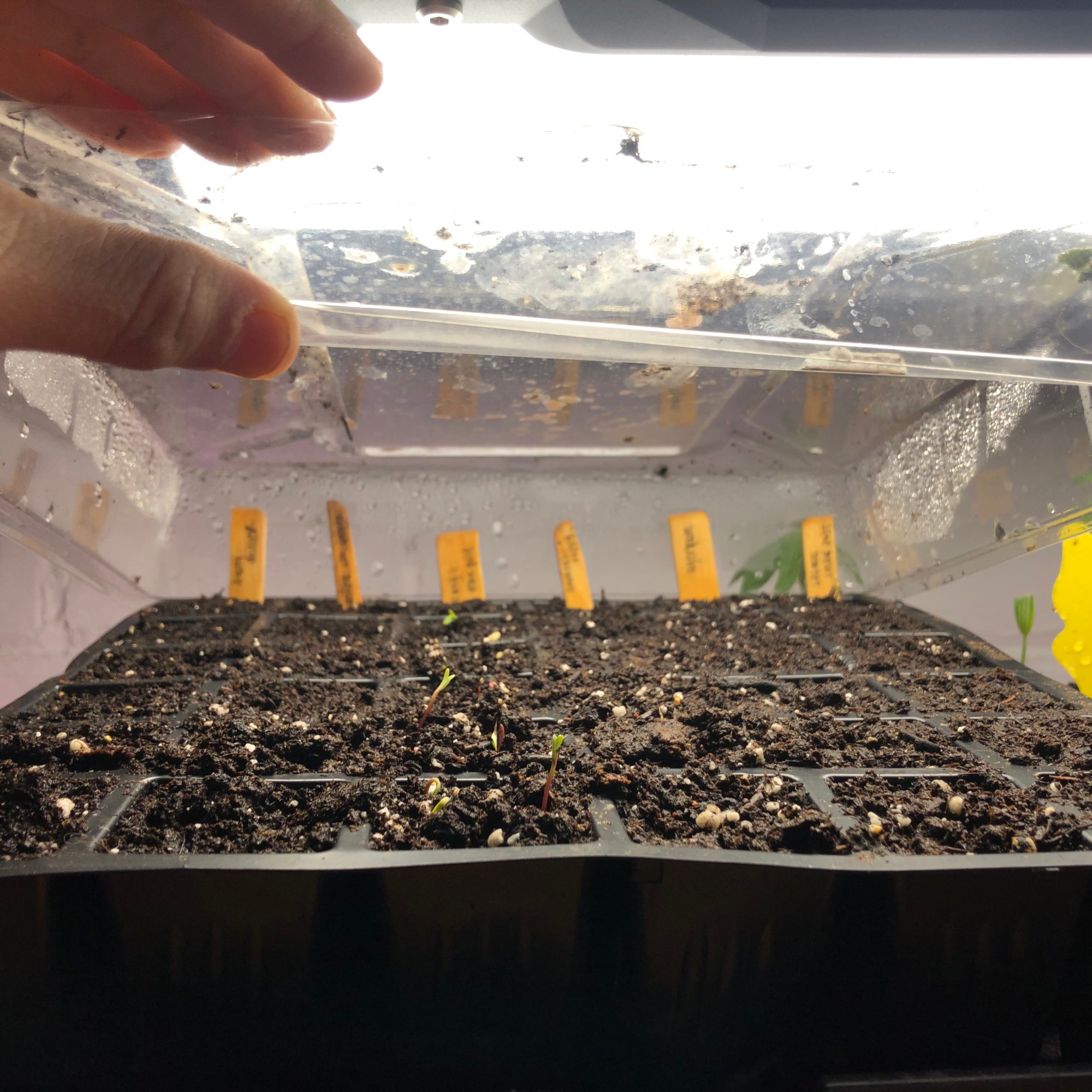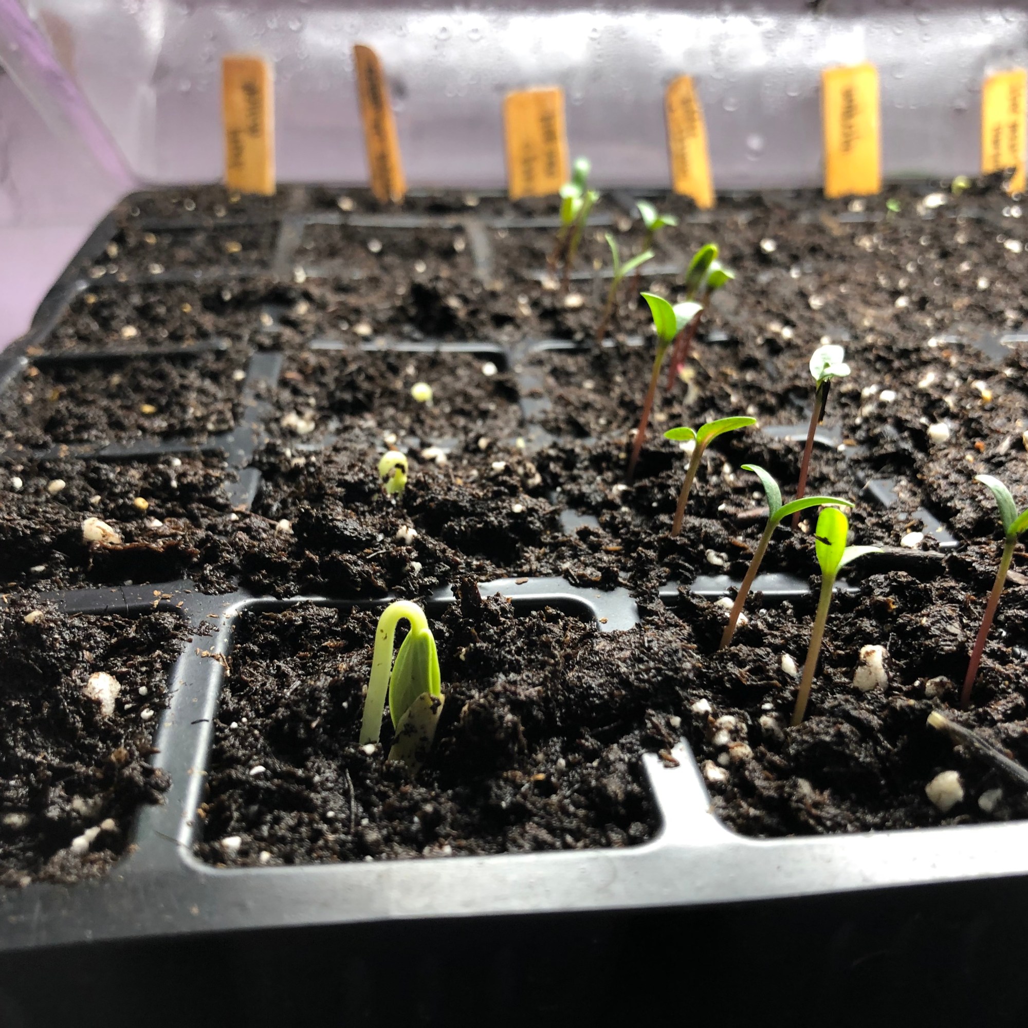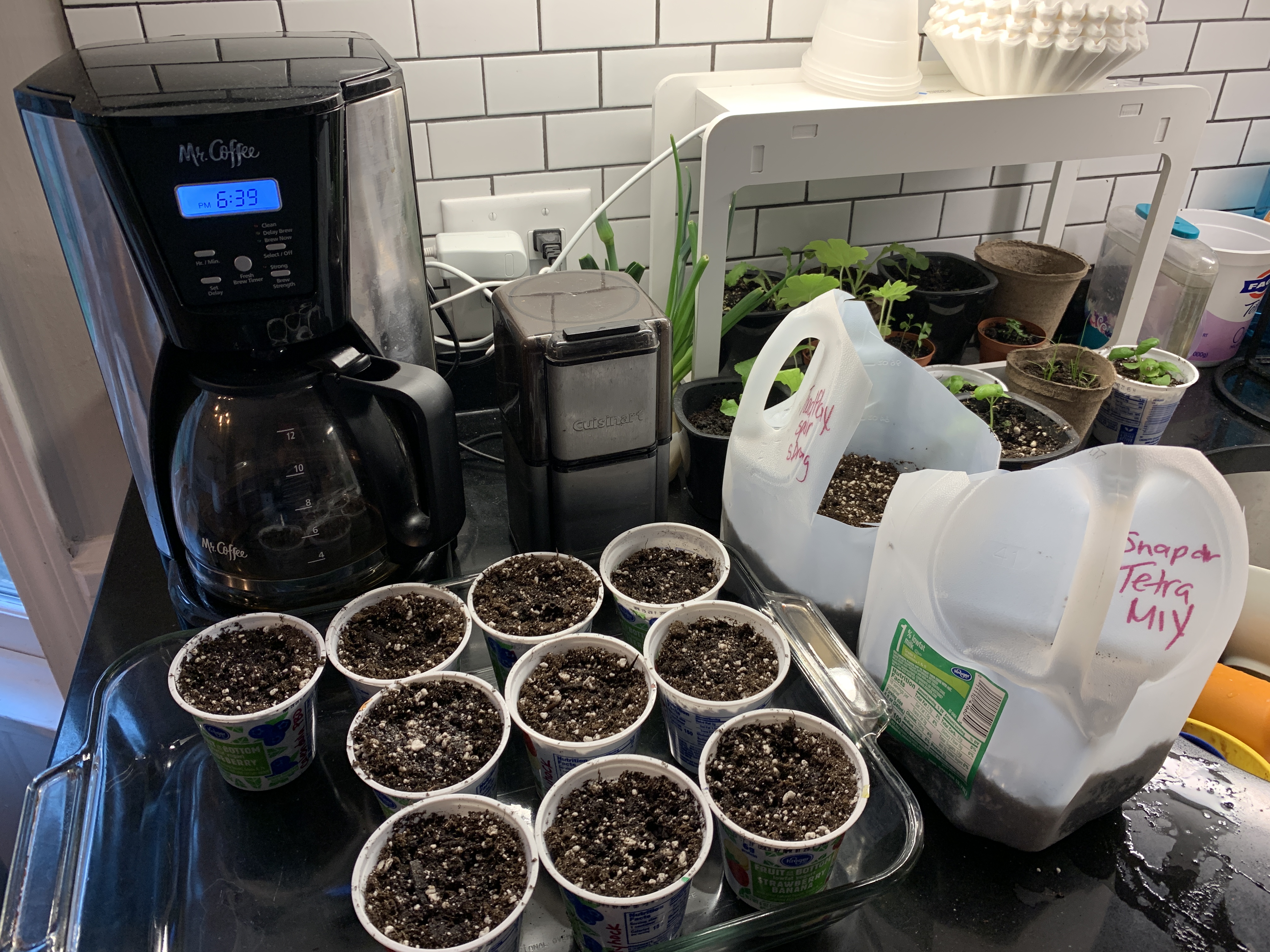 Another lesson that I learned is that I want to use trays. As evidence below, I used yogurt cups and empty milk gallons last year. The yogurt cups were fine, but Grow trays are much more compact and will keep your seedlings more compact and organized. I would not recommend using Milk Containers like I did. It was too difficult to get my seedlings out . I ended up planting the whole chunk of soil as one big plant, which caused my plants to not have enough room to grow.